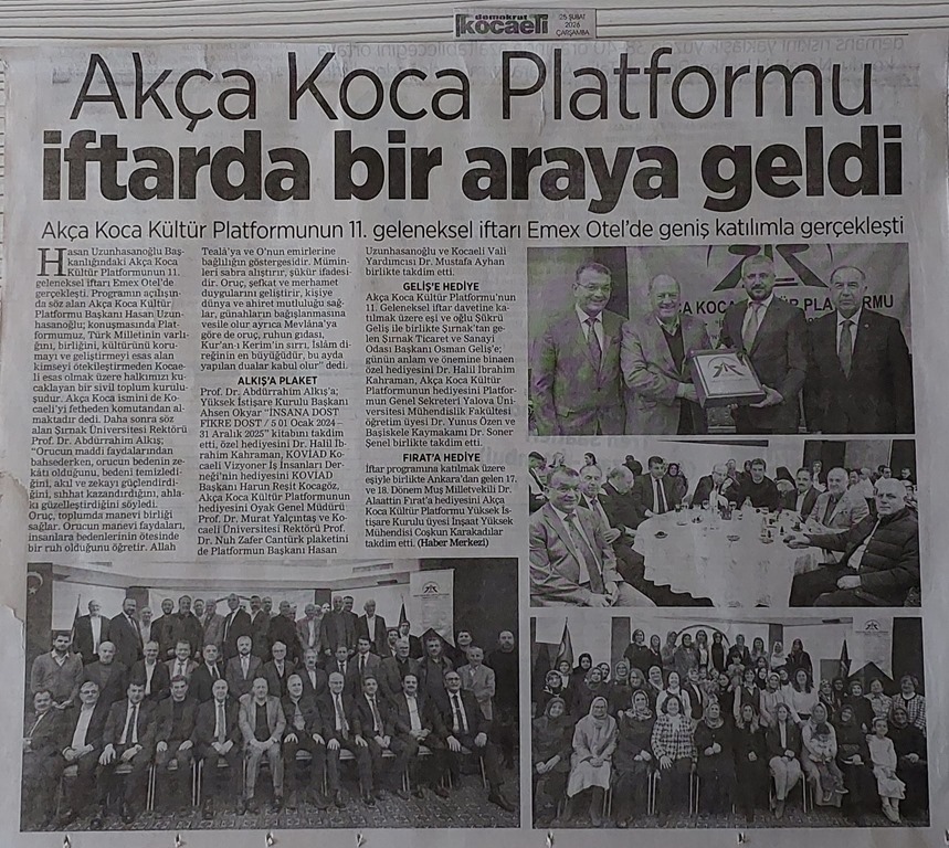 Kocaeli Kandıralılar Derneğinin Ramazan ayı İftar programı 24 Şubat 2026 Salı günü akşamı Elit Kır Restoranda gerçekleşti. Kuruluşunun 32. yılı için düzenlenen programda Kurucular, Başkanlar ve üyeler bir araya geldi.