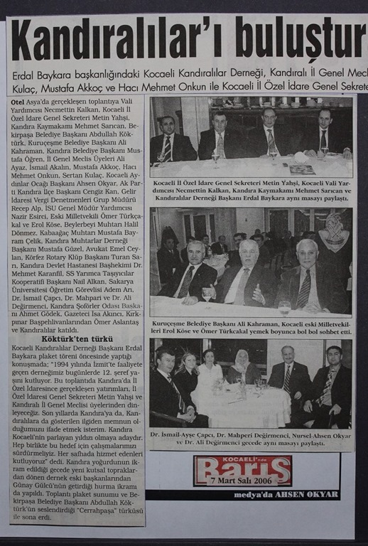 Kocaeli Aydınlar Ocağı’nın İzmit Öğretmenevi’nde düzenlediği geleneksel iftar programı, farklı dönemlerde görev almış isimleri bir araya getirdi. Eski başkanlar Mali Müşavir Ahsen Okyar, Dr. Halil İbrahim Kahraman, Av. Ruhittin Sönmez, Dr. Süleyman Pekin ve Av. Gürkan Uysal programa katılarak birlik mesajı verdi. Bunun yanı sıra Kocaeli Milli Kuruluşlar Birliği Başkanı Yücel Alpay Demir, Kocaeli Sürdürülebilir Kalkınma Derneği Başkanı Recep Sarısakal ve Kocaeli Türk Metal Sendikası (E) Şube Başkanı Orhan Çakar da iftar sofrasında yer aldı.