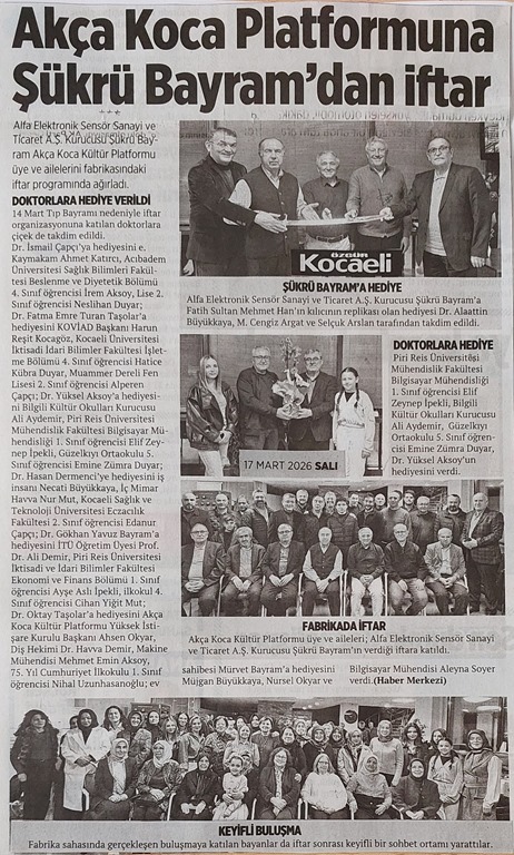Alfa Elektronik Sensör Sanayi ve Ticaret A.Ş. Kurucusu Şükrü Bayram Akça Koca Kültür Platformu’nu fabrikasındaki iftar programında ağırladı.