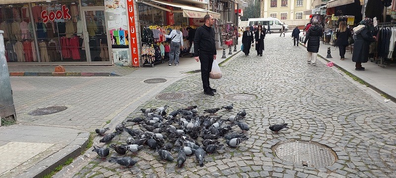 Ulugazi İlkokuluna giderken yol üzeri güvercinler…