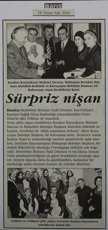 İçişleri Bakan Yardımcısı Münir Karaloğlu, Prof. Dr. Sadettin Hülagu, Kocaeli İl Müftüsü Mehmet Sönmezoğlu, e. Samsun Büyükşehir Belediyesi Genel Sekreteri İlhan Bayram, Kocaeli Aydınlar Ocağı Başkanları; H. İbrahim Kahraman, Ahsen Okyar, Av. Ruhittin Sönmez ve Prof. Dr. Tahir Serkan Irmak, Prof. Dr. Bülent Coşkun, KBB Koordinatör Abdullah Köktürk, eğitimci Ahmet Demir, eski Kuruçeşme Belediye başkanı Ali Kahraman, e.İSKİ Yönetim Kurulu üyesi Musa Ordu, Kocaeli Valiliği Kültür Müdürlüğü Türk Müziği Korosundan Dr. Mehmet Bengi, İlyas Kula, Dr. Hamit Aslan, e.İl Kültür ve Turizm Müdürlü Adnan Zamburkan, Makine Müh. Ahmet Balkaya, YM Cemal Barış, Dr. Ferit Gençtürk, Tarihçi Volkan Şenel, Diş Hekimi Ömer Erdal, Gazeteci Mine Güler, Akça Koca Kültür Platformu Başkanı Hasan Uzunhasanoğlu, Dr. İsmail Çapcı, İş insanı Hasan Baykara, Bahçecik Damlar Camii Derneği yöneticisi Muhammer Kırdemir, Dr. Metin Öztürk, Ecz. Selçuk Arslan, Cemil Uslu, Dr. Murat Ölçer, Özel Marmara Sağlık AŞ Yönetim Kurulu Başkanı Esener Maçil, İnşaat Müh. Rıza Güven Usta, Diş Hekimi Yaşar Benlidayı, Makine Mühendisi Hasan Baltacı ve çok sayıda seveni katıldı.