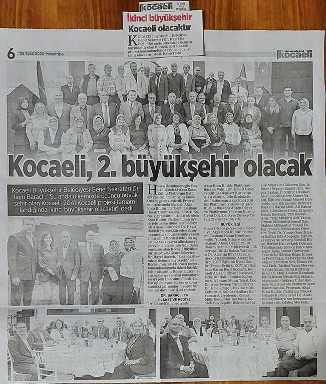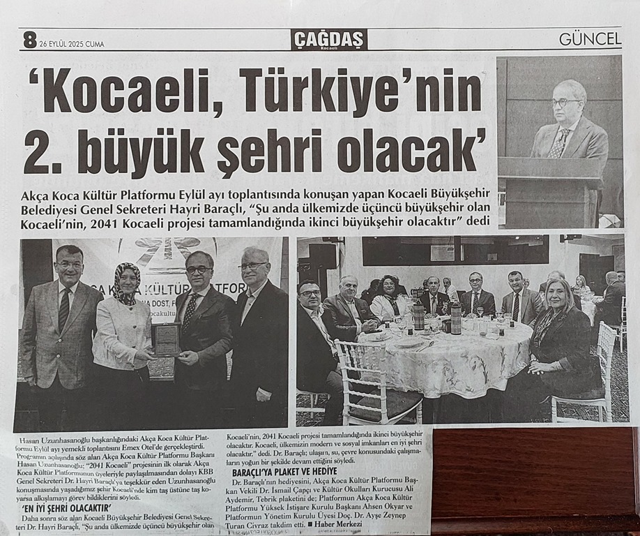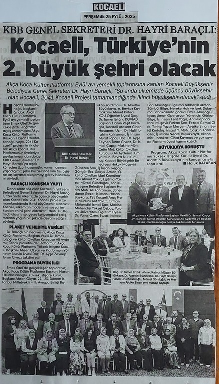 19 Eylül 2025 Cumartesi / Dr. Baraçlı; “2041 Kocaeli Projesiyle Kocaeli, Türkiye’nin 2. Büyük Şehri Olacak”