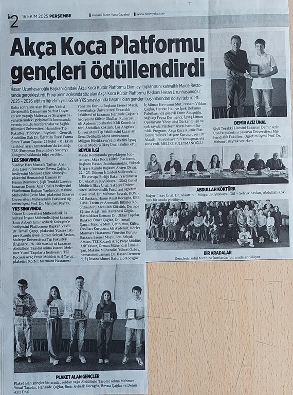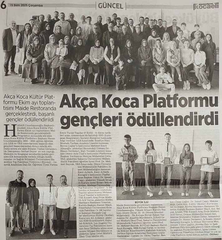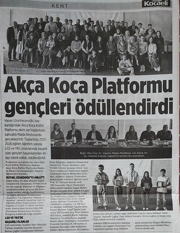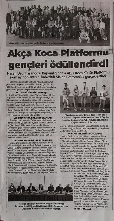 Programın açılışında söz alan Akça Koca Kültür Platformu Başkanı Hasan Uzunhasanoğlu; 2025 – 2026 eğitim öğretim yılı LGS ve YKS sınavlarında başarılı olan gençleri başarılarından dolayı tebrik etti.