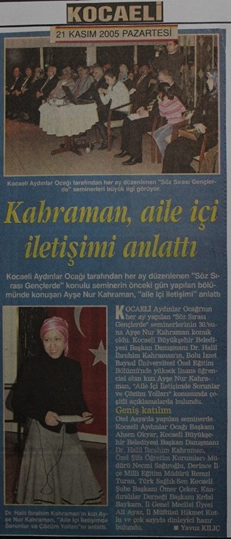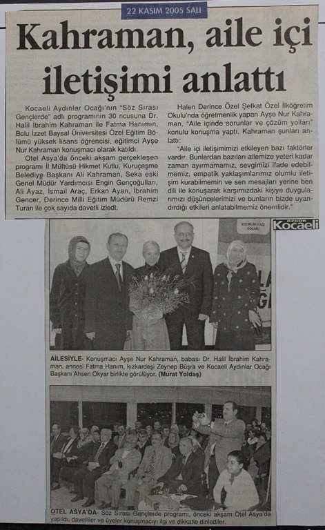 Düzce Türk Ocağı tarafından düzenlenen ve Bursa Uludağ Üniversitesi İlahiyat Fakültesi Öğretim Üyesi Prof. Dr. Bilal Kemikli’nin konuşmacı olarak katıldığı söyleşide, Türk–İslam düşüncesinin öncü isimlerinden Pir-i Türkistan Ahmed Yesevî anıldı. Kocaeli Aydınlar Ocağı da etkinliğe geniş bir katılım sağladı.