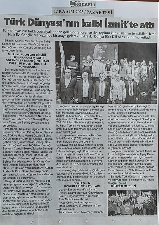 17 Kasım 2025 Pazartesi / Kocaeli Büyükşehir Belediyesi Sivil Toplum Merkezi'ndeki Gazi Mustafa Kemal Atatürk’ü anma programı, geniş katılımla duygusal anlara sahne oldu