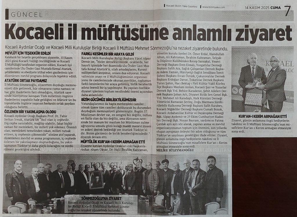 12 Kasım 2025 Çarşamba / Kocaeli’de anlamlı söyleşi: “Atatürk, ölüm döşeğinde bile ülkesini düşündü”
