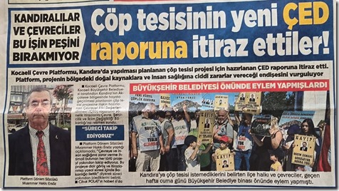 Kocaeli Çevre Platformu ve Kocaeli Kandıra Kültür Çevre Derneği (KANÇED) tarafından Yunus Emre Kültür Merkezinde gerçekleştirilen Kandıra Çöp Tesisi Çalıştayında "Doğu bölgesi atık bertaraf ve düzenli depolama alanı" değerlendirme sonuçları açıklandı. Gerçekleştirilen çalıştayda 8 adet ilgili masa bilimsel çerçevede görüş bildirdi. Sonuç bildirgesi ise gerekli düzenlemelerin ardından Pazartesi günü kamuoyuna duyurulacak.