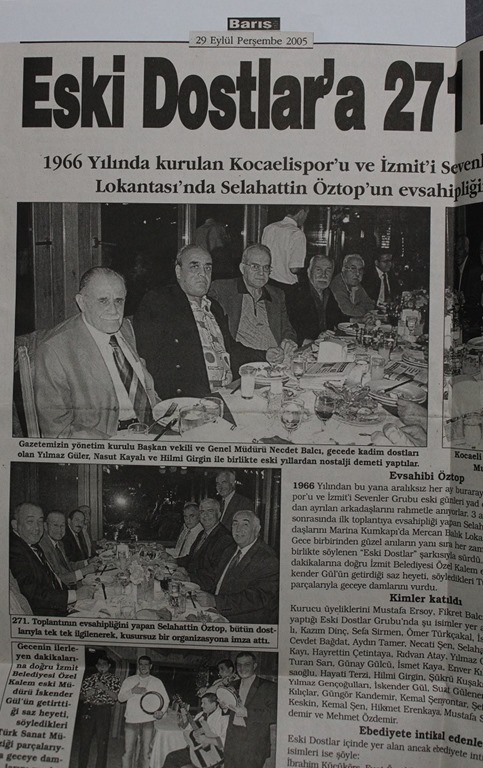 Rahmetli Mustafa Ersoy (Kandıralı), Fikret Balcı (Amcam) ve Emin Saka (Kocaelispor logosunu çizen) bir araya gelerek her ayın son cuma akşamı birlikte yemek yemeye başlamışlar.