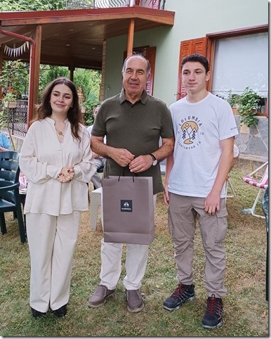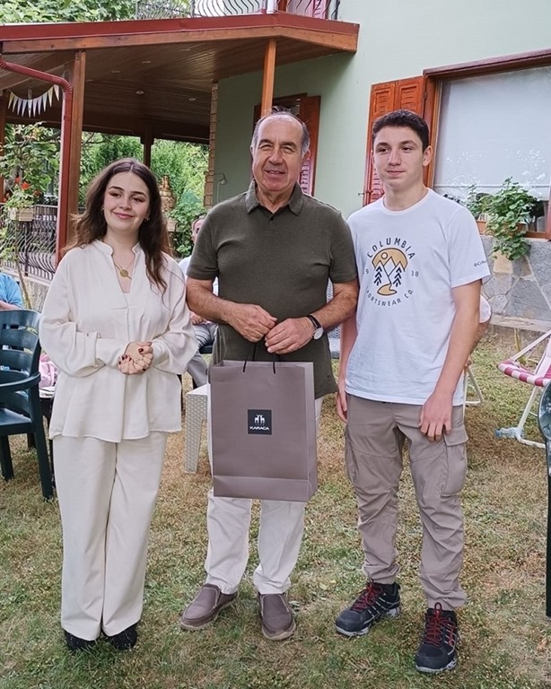 Gurubun gençleri İrem Özyurt ve Alperen Çapçı birlikte Dr.Alaattin Büyükkaya’ya Babalar Günü hediyesini takdim ederken