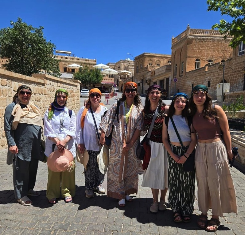 Midyat'ta tipik yivli kubbe ve minare yapılarına hayran kalan Nursel ve Ahsen Okyar, Tanzer Ünal