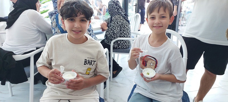Tuna Okyar ve Mete Küçük gençlere dondurma