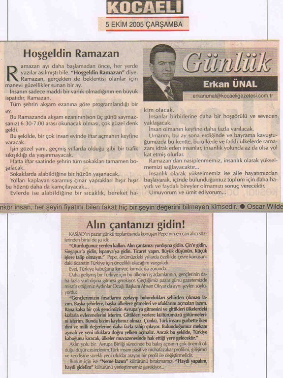 Nostalji; 20 sene önce BUGÜN: Kocaeli Gazetesi, 5 Ekim 2005 Çarşamba