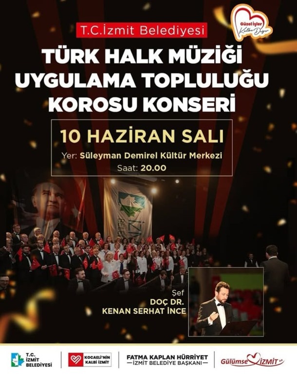 10 Haziran 2025 Salı / İzmit Belediyesi Süleyman Demirel Kültür Merkezinde Şef Doç. Dr. Kenan Serhat İnce “Türk Halk Müziği Uygulama Topluluğu Korosu Konseri”