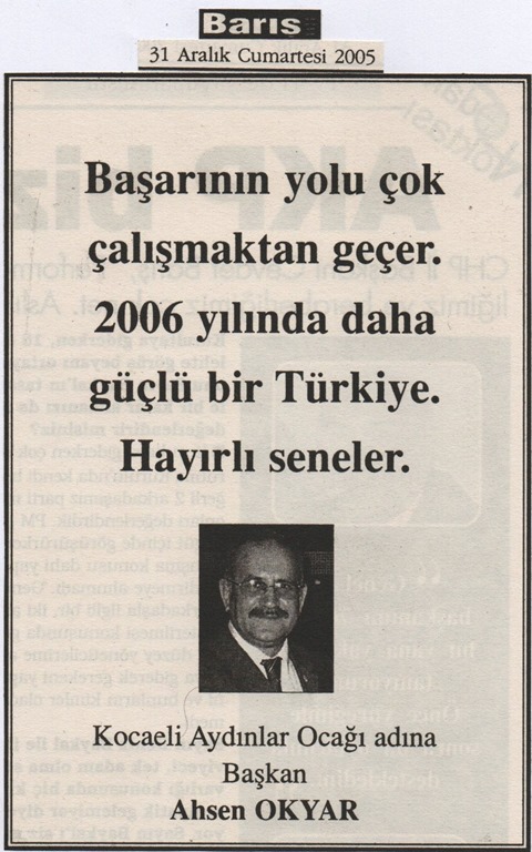 Nostalji; 20 sene önce BUGÜN: Kocaeli Barış Gazetesi, 31 Aralık 2005 Cumartesi
