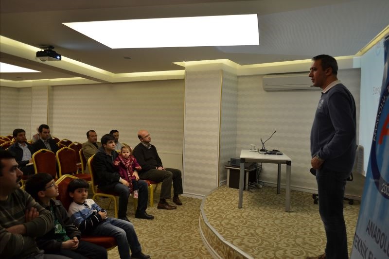 Yalova Üniversitesi Öğretim Görevlisi Yunus Özen Konya’daki Anadolu Teknik Elemanlar Derneği’nde sunum yaparken