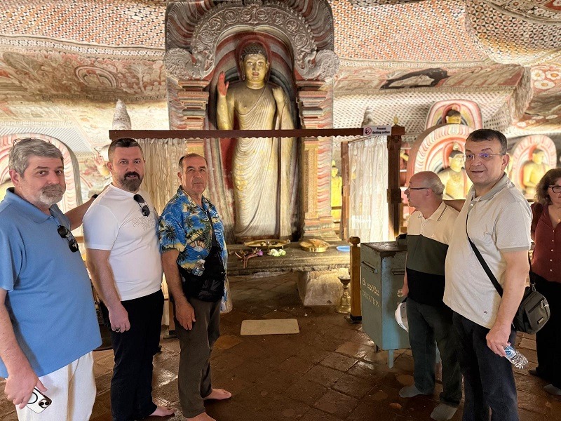 Dr. Alaattin Büyükkaya, Serhat Duyar, Harun Reşit Kocagöz, Dr. Oktay Taşolar, Doğan Yücel, Çetin Mut ve hanımlar Dambulla mağara tapınağı ayağında