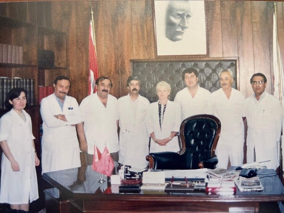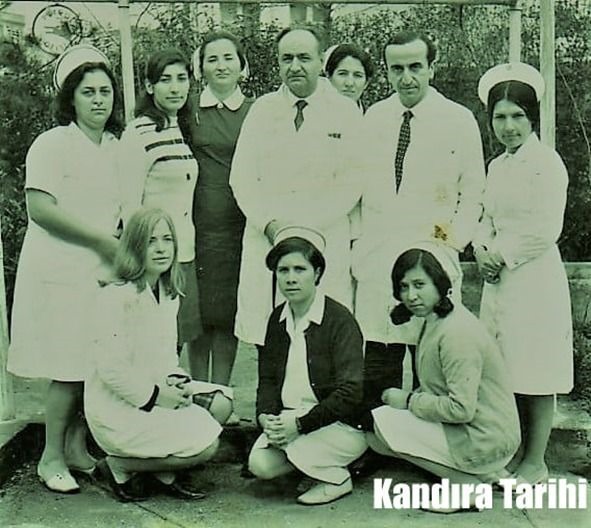 Op.Dr.Halil İbrahim Erden(ortada); 1973-74 yıllarında başhekimlik yapan Uz.Dr. Nejat Yıldırım(sağdan ikinci), Başhemşire Yurdagül Özen ve diğer çalışma arkadaşlarıyla görülüyor.