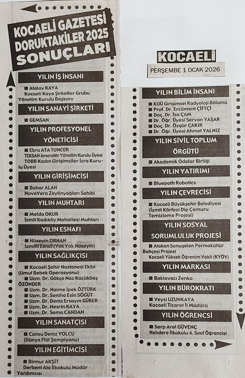 Kocaeli Gazetesi, 01 Ocak 2026 Perşembe
