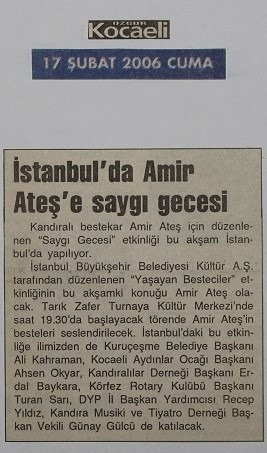 Nostalji; 20 sene önce BUGÜN: Özgür Kocaeli Gazetesi, 17 Şubat 2006 Cuma