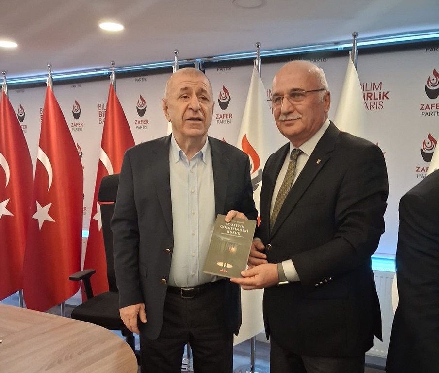 Av. Ruhittin Sönmez, Zafer Partisi Genel Başkanı Prof. Dr. Ümit Özdağ’a, “Siyasetin Gölgesindeki Hukuk” kitabı takdimi & ZAFER Partisi önünde